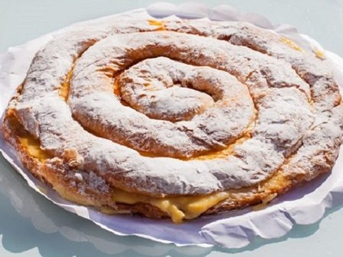 Unos de los postres más populares de las islas baleares, es su famosa ensaimada, una especie de rosca de masa azucarada que se hornea dándole forma de espiral para posteriormente bañarla con azúcar glass.