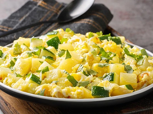 Este es otro de los platos más típicos de Murcia, se trata de un revuelto de huevo al que le agregan calabacín y cebolla, en algunas oportunidades también le agregan patatas o berenjenas, suele tomarse como aperitivo o como acompañante de otras comidas, es una perfecta muestra del uso de productos de la huerta local en una combinación perfecta de sabores.