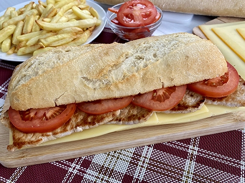 Acompaña este delicioso bocadillo de lomo con unas ricas patatas fritas.