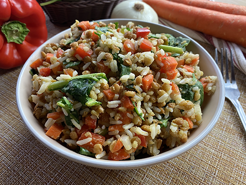 Esta ensalada de arroz y lentejas es muy sencilla y rápida de preparar, por tanto, si no te quieres complicar en la cocina y quieres una receta fácil y deliciosa para acompañar tus comidas y comer de manera saludable, esta receta no te va a defraudar.