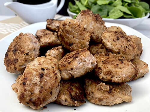 Paso 2: Seguidamente en una sartén añadimos la mantequilla, el aceite de oliva y dejamos calentar, por otro lado con la ayuda de dos cucharadas, iremos dándole forma a nuestras albóndigas (ver el video), las agregamos a nuestra mantequilla caliente y las cocinamos por todos sus lados hasta que estén hechas.