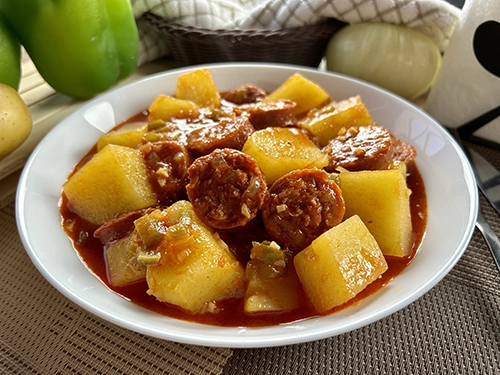 Las patatas con chorizo es un plato tradicional de la cocina española, con el pasar del tiempo han conquistado muchos estómagos y paladares y lo mejor de todo es que la podemos hacer en casa de manera sumamente sencilla.