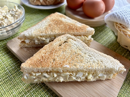 Para esta receta de sandwich de huevo podemos agregar cualquier variedad de ingredientes como por ejemplo pepinillos o queso, entre otros.