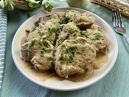 Incorporamos la salsa nuevamente en la sartén y cuando tome temperatura, incorporamos el solomillo de cerdo, cocinamos por 3 minutos más (los vamos bañando con su salsa), apartamos del fuego, servimos en un plato, agregamos un poco de perejil fresco por encima y ya tenemos listo nuestro rico solomillo en salsa.