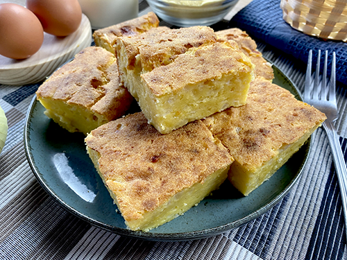 Agregamos la mezcla en un recipiente apto para horno y cocinamos por 30 minutos o hasta ver que esté doradita por encima, apartamos del horno, dejamos enfriar, cortamos en trozos y a disfrutar de esta riquísima sopa paraguaya.